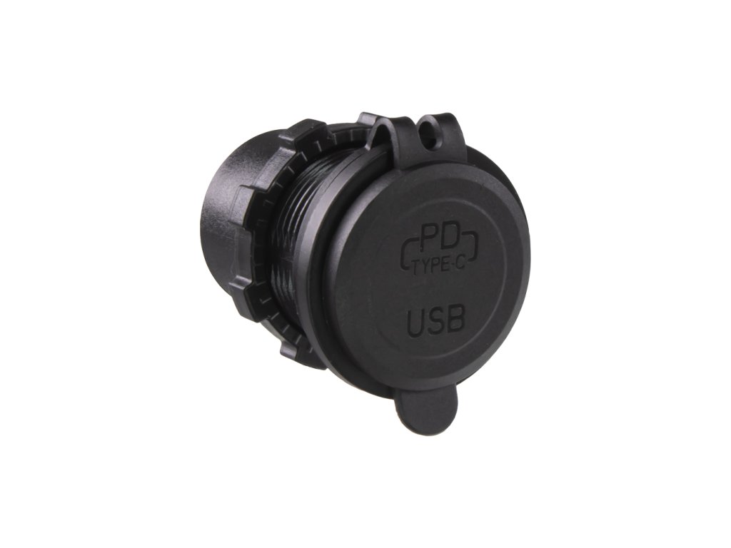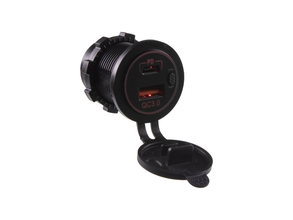 USB nabíječka do panelu, QC3.0 + USB-C, s krytkou proti prachu a vlhkosti.