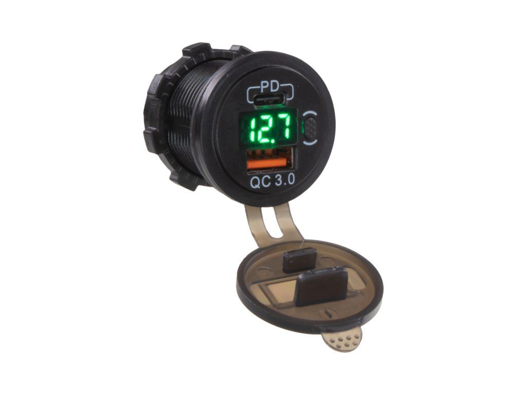 USB nabíječka QC3.0 + USB-C, digitální voltmetr do panelu