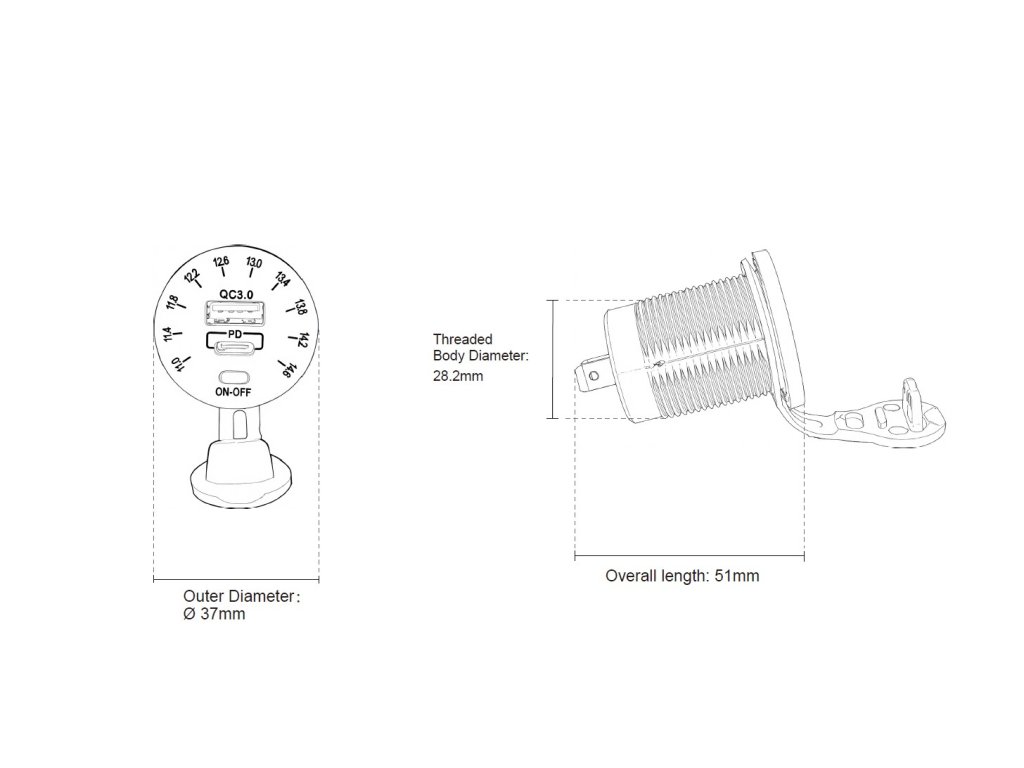 USB nabíječka QC3.0 + USB-C, voltmetr s color analogovou indikací do panelu