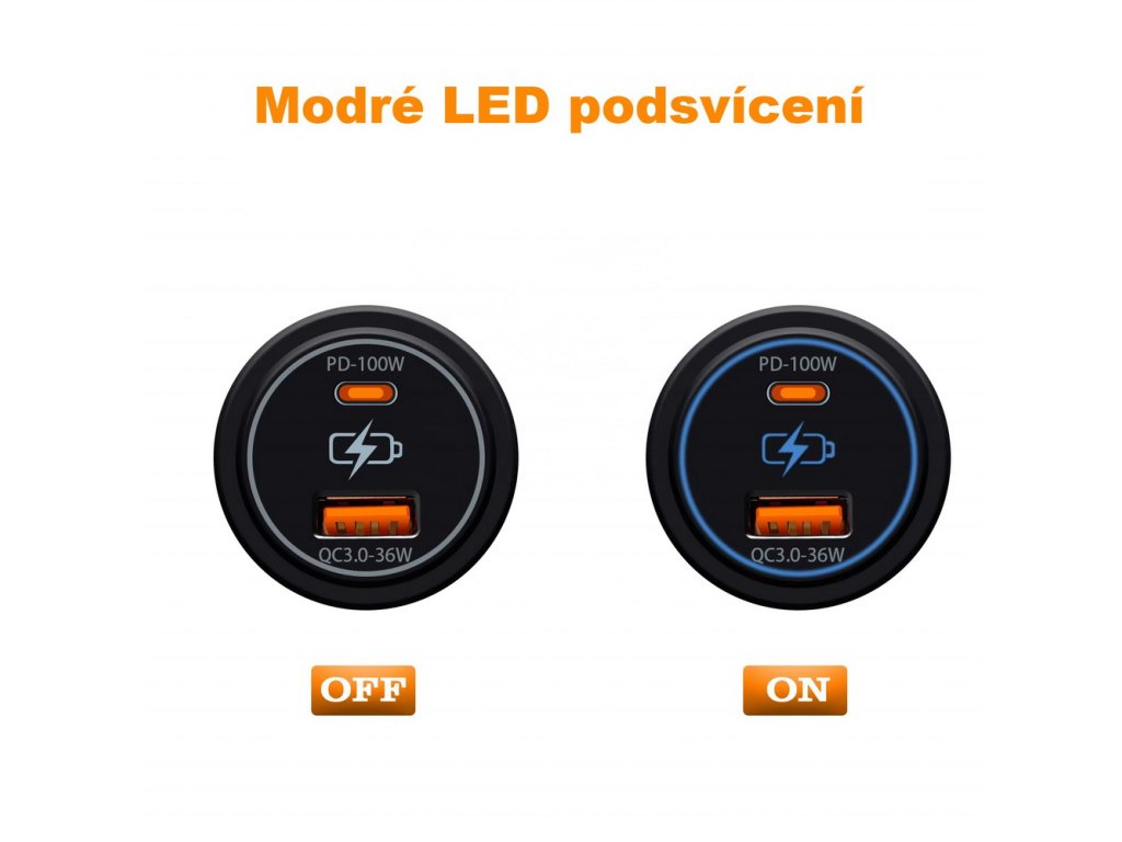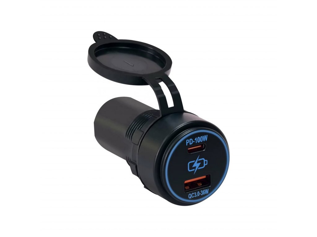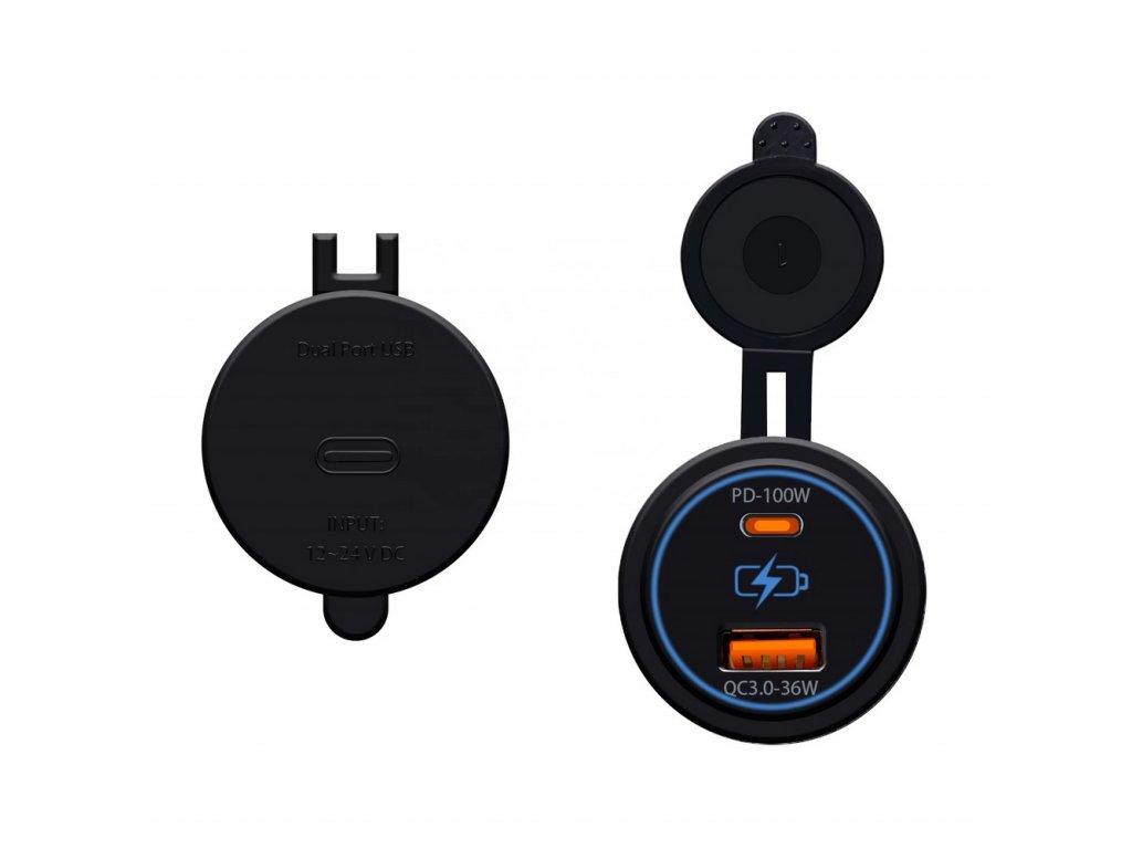 USB QC3.0 + USB-C 100W/20V zásuvka 12/24V