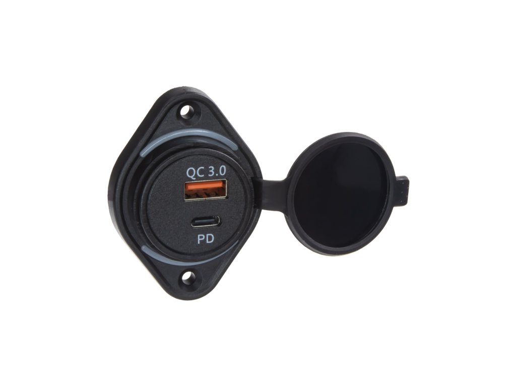 USB QC3.0 + USB-C zásuvka 12/24V, montáž na povrch