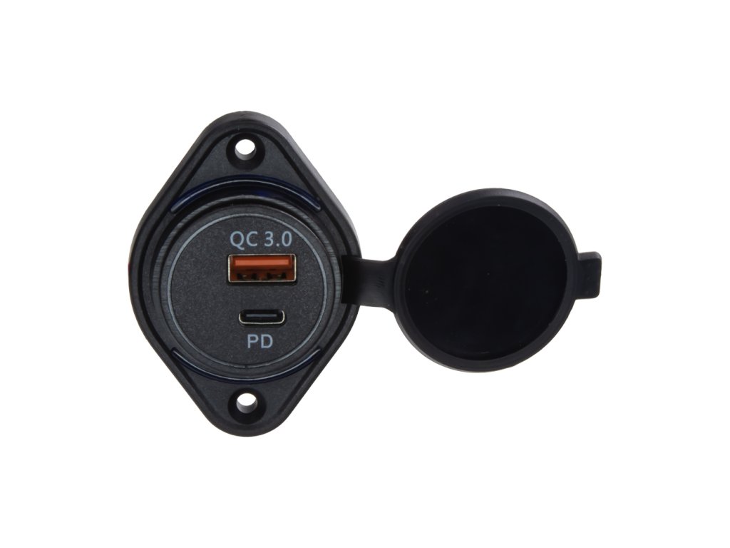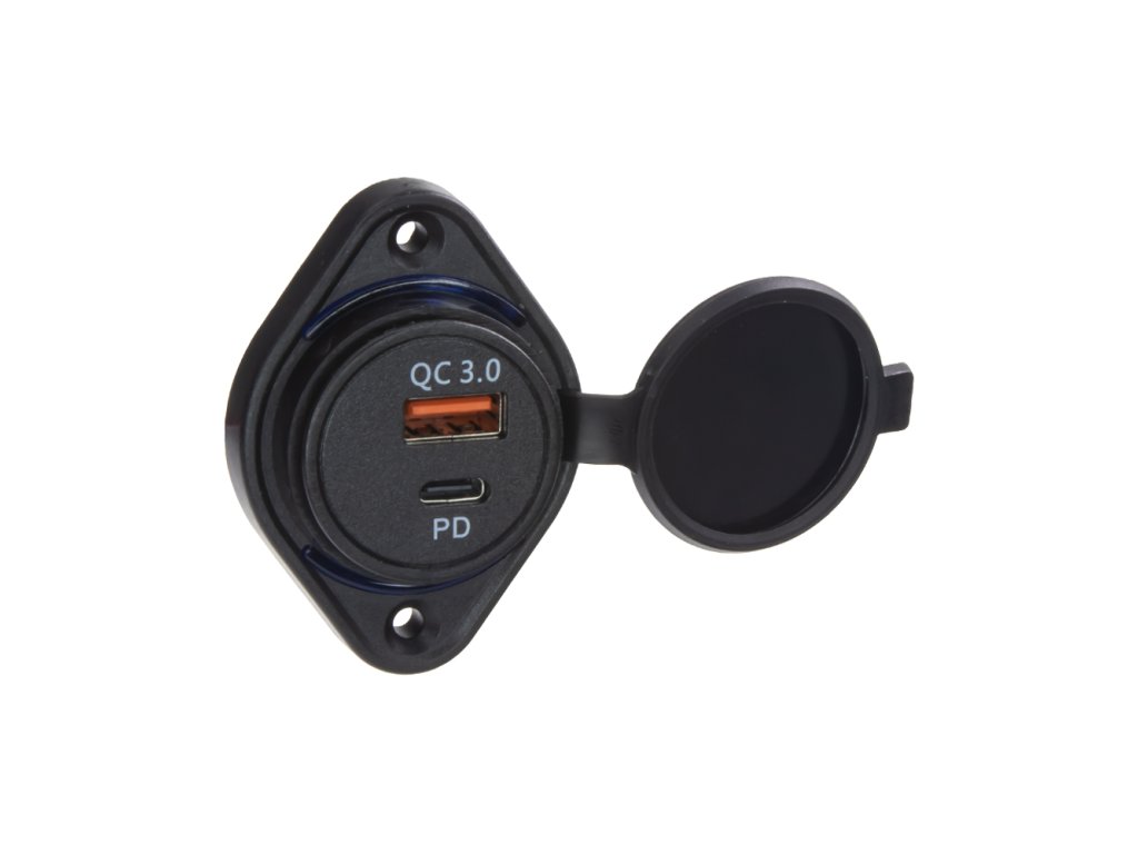 USB QC3.0 + USB-C zásuvka 12/24V, montáž na povrch