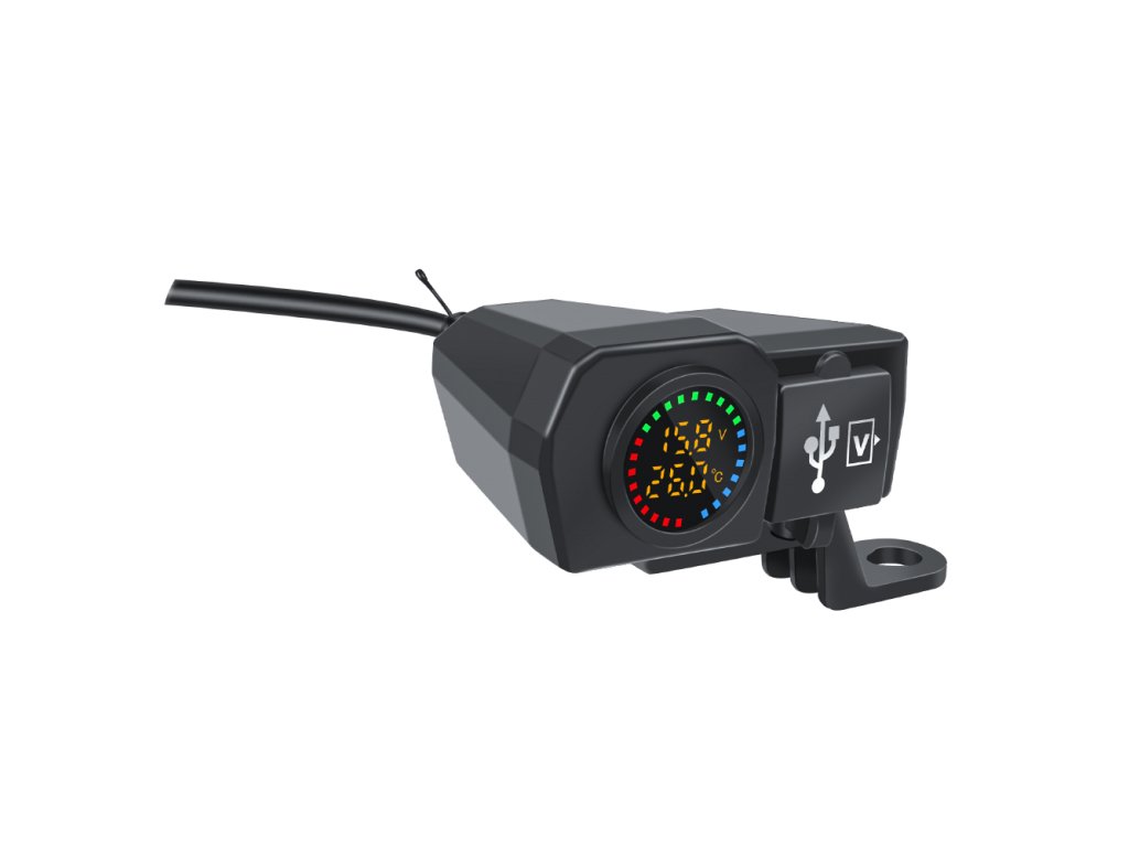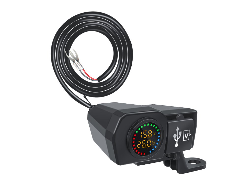 2x USB nabíječka s voltmetrem a teploměrem, vhodné např. pro motocykly, čtyřkolky a jiné.