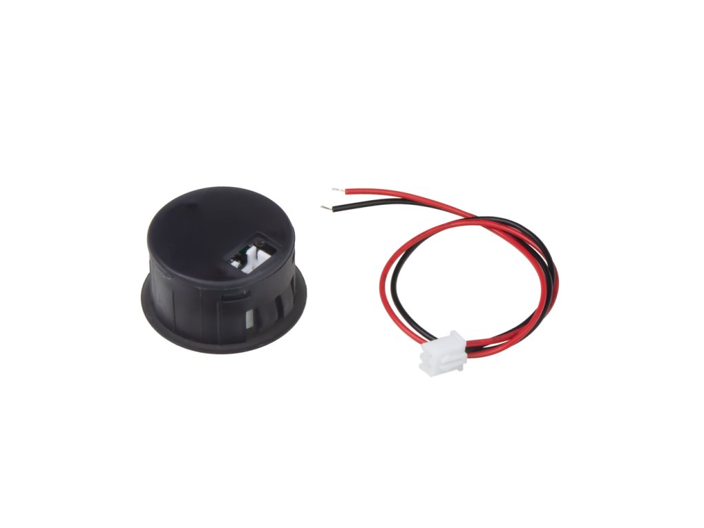 Připojení pomocí dvou přípojných vodičů: červený + / černý - (voltmetr má ochranu proti přepólování).