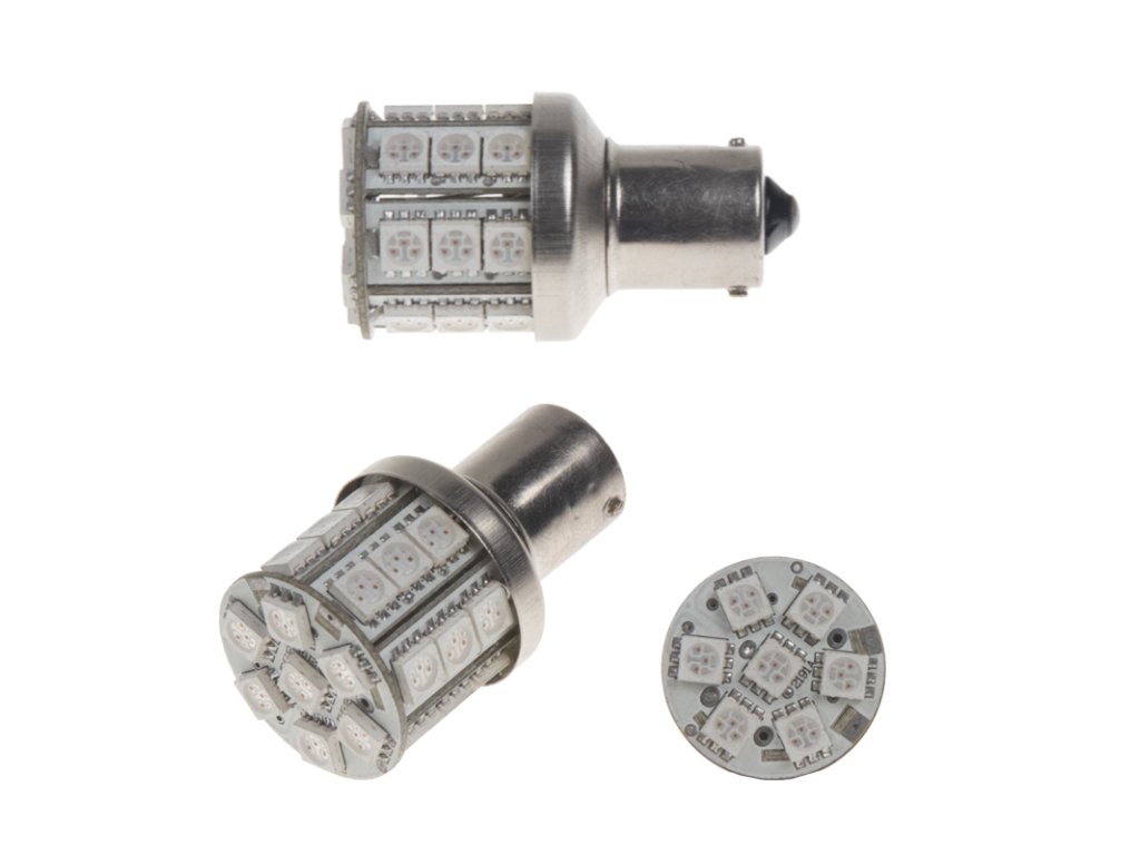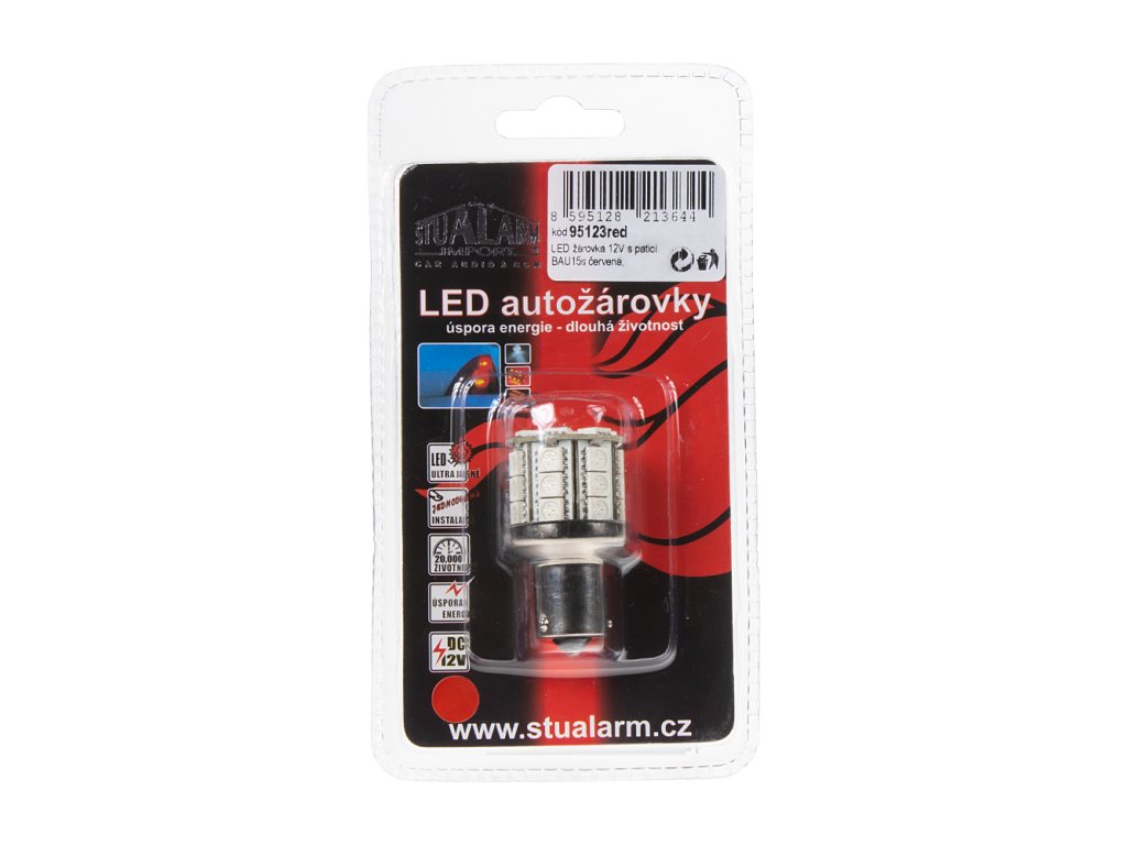 Náhradní LED žárovka s paticí BAU15s červená, 28 3-čipových SMD LED diod.