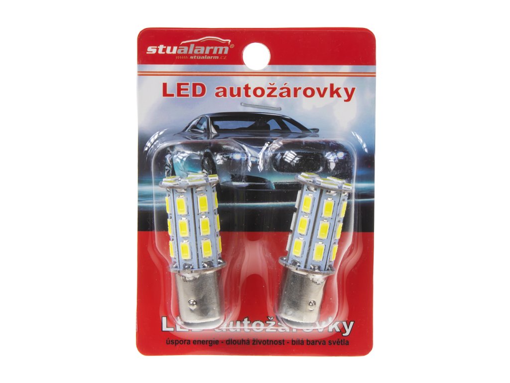 x LED BAY15d (dvouvlákno) bílá, 12V, 27LED/3SMD