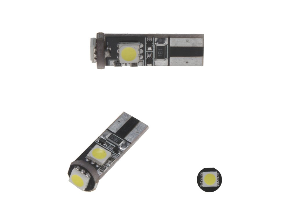 Náhradní LED žárovka s paticí T10, bílá, s vestavěným rezistorem (nehlásí závady řídící jednotky na žárovce u nových vozidel), 3x vysocesvítivé 3-čipové SMD LED diody, vhodná do parkovacích světel u novějších vozidel, odpovídá žárovce "celosklo" W5W. Díky teplotě světla cca 6000 K jsou LED žárovky ideálním doplňkem do reflektorů s xenonovými výbojkami, kde žluté světlo obyčejné žárovky působí rušivě.